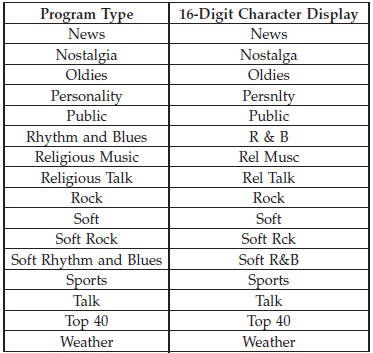 By pressing the SEEK button when the Music Type icon is displayed, the radio will be tuned to the next frequency station with the same selected Music Type name. The Music Type function only operates when in the FM mode.